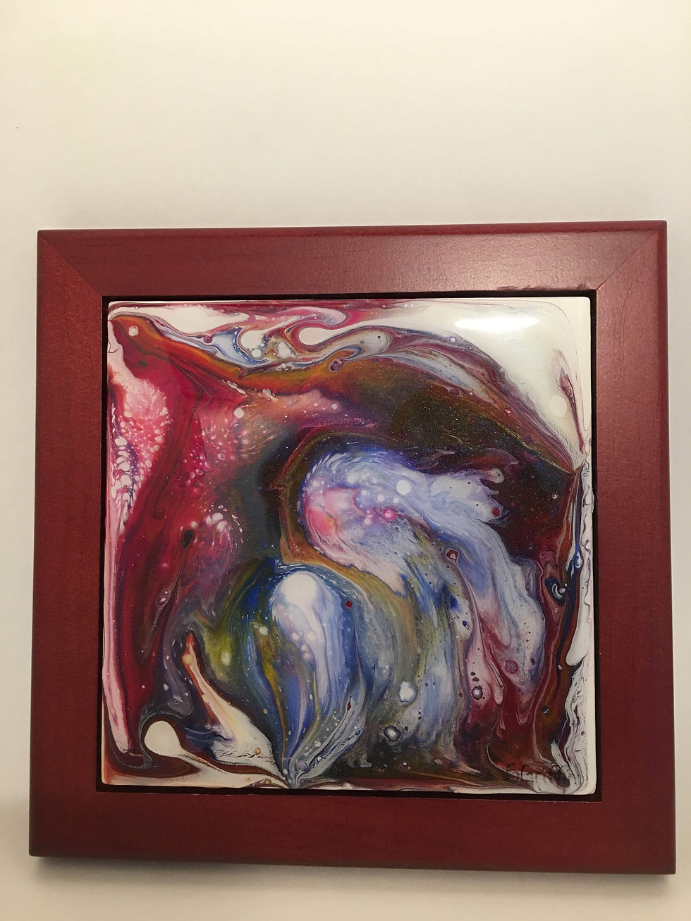 Hand painted one-of-a-kind ceramic tiles combines with resin. Ready to hang or set on table or desk top. Hand-molded resin pieces for a pop of color anywhere!